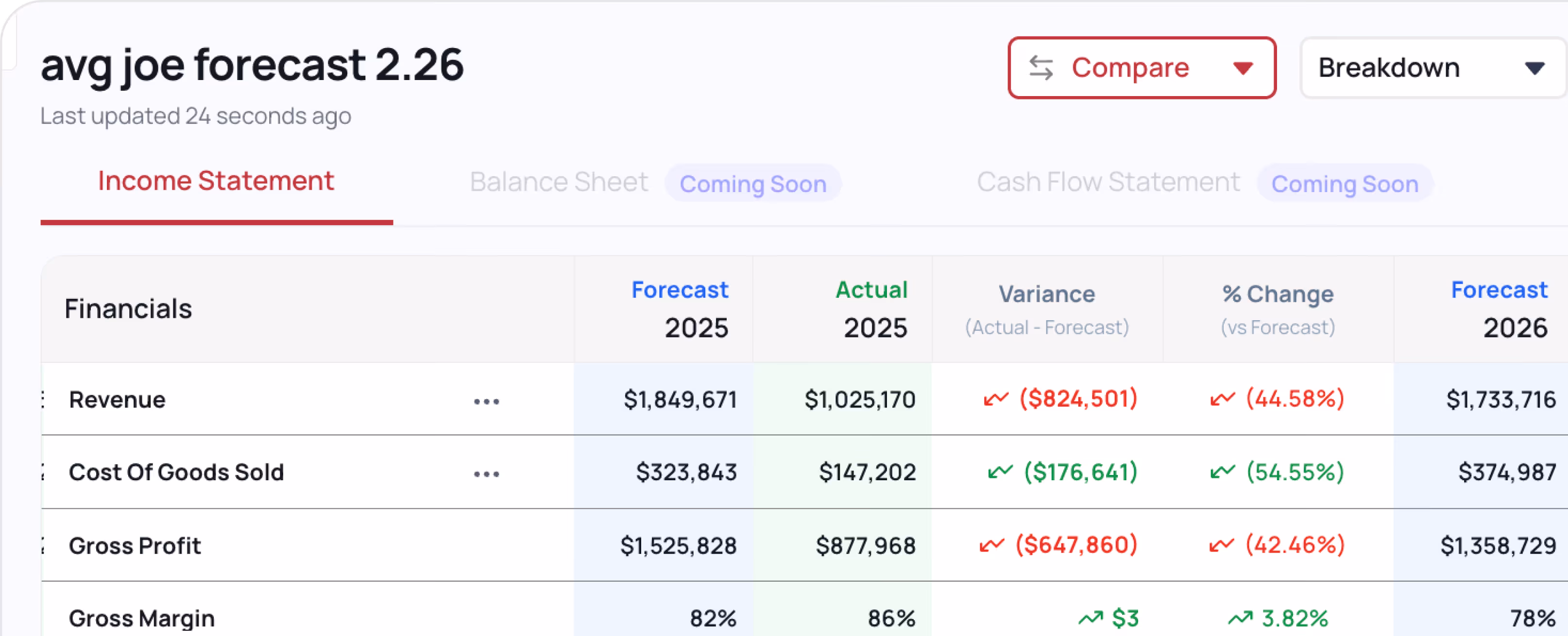 Our team has years of experience working with C-Suite executives, doing large capital raises, working on complex M&A deals, and developing financial planning/analysis software
